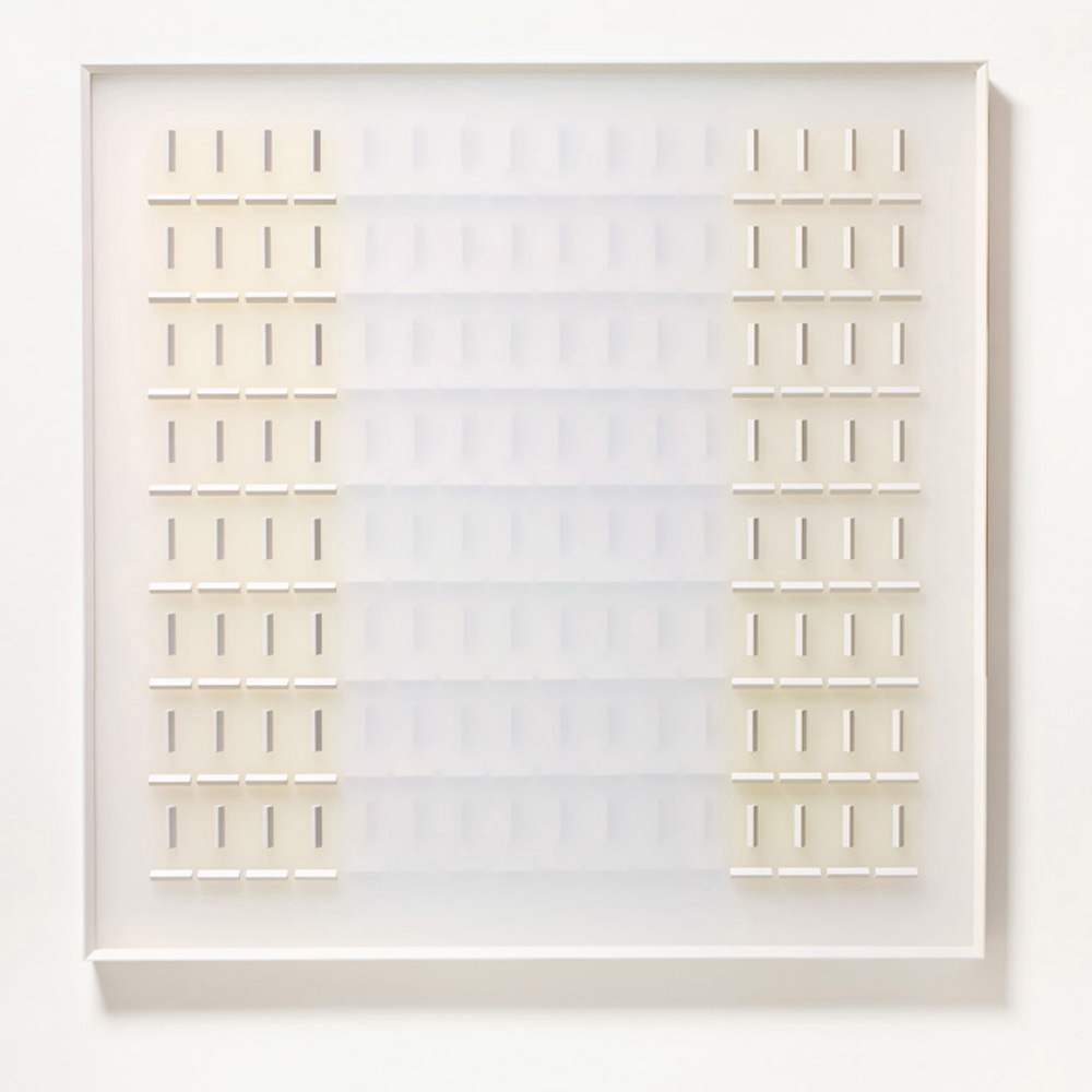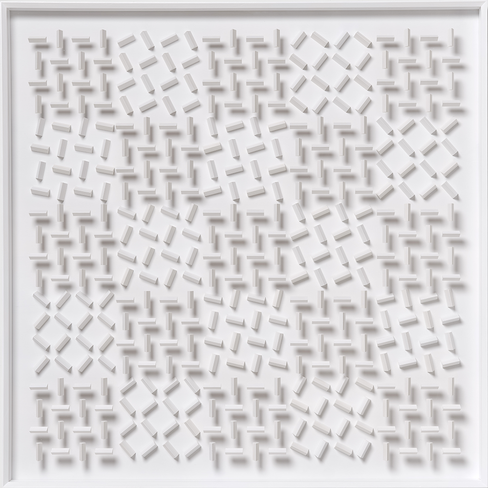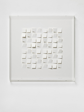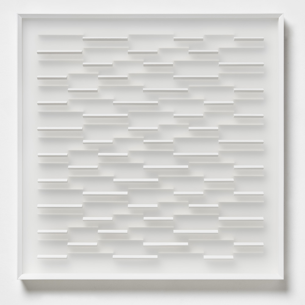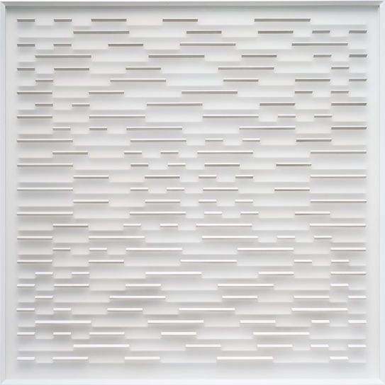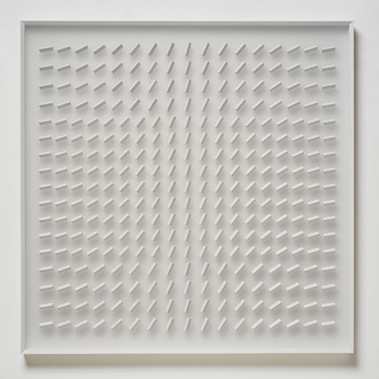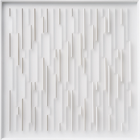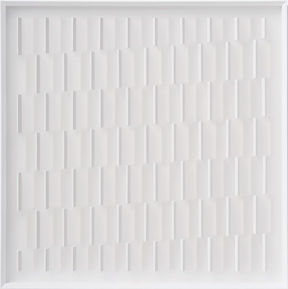 Die seit 1960 entwickelten seriellen Reliefs und seit 1967 bis heute entstandenen seriellen Objekte beziehen sich hauptsächlich auf die Farbe Weiß, auf die Transparenz, das Licht und den Raum und schließen die Interaktion des Betrachters ein.