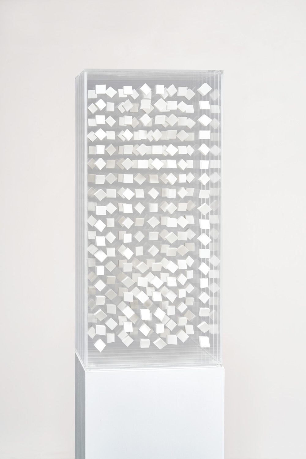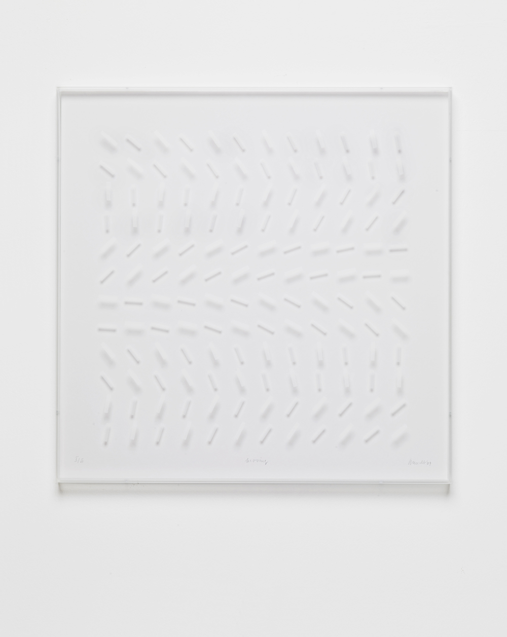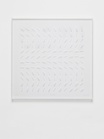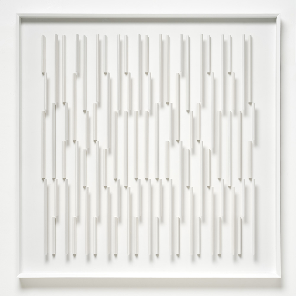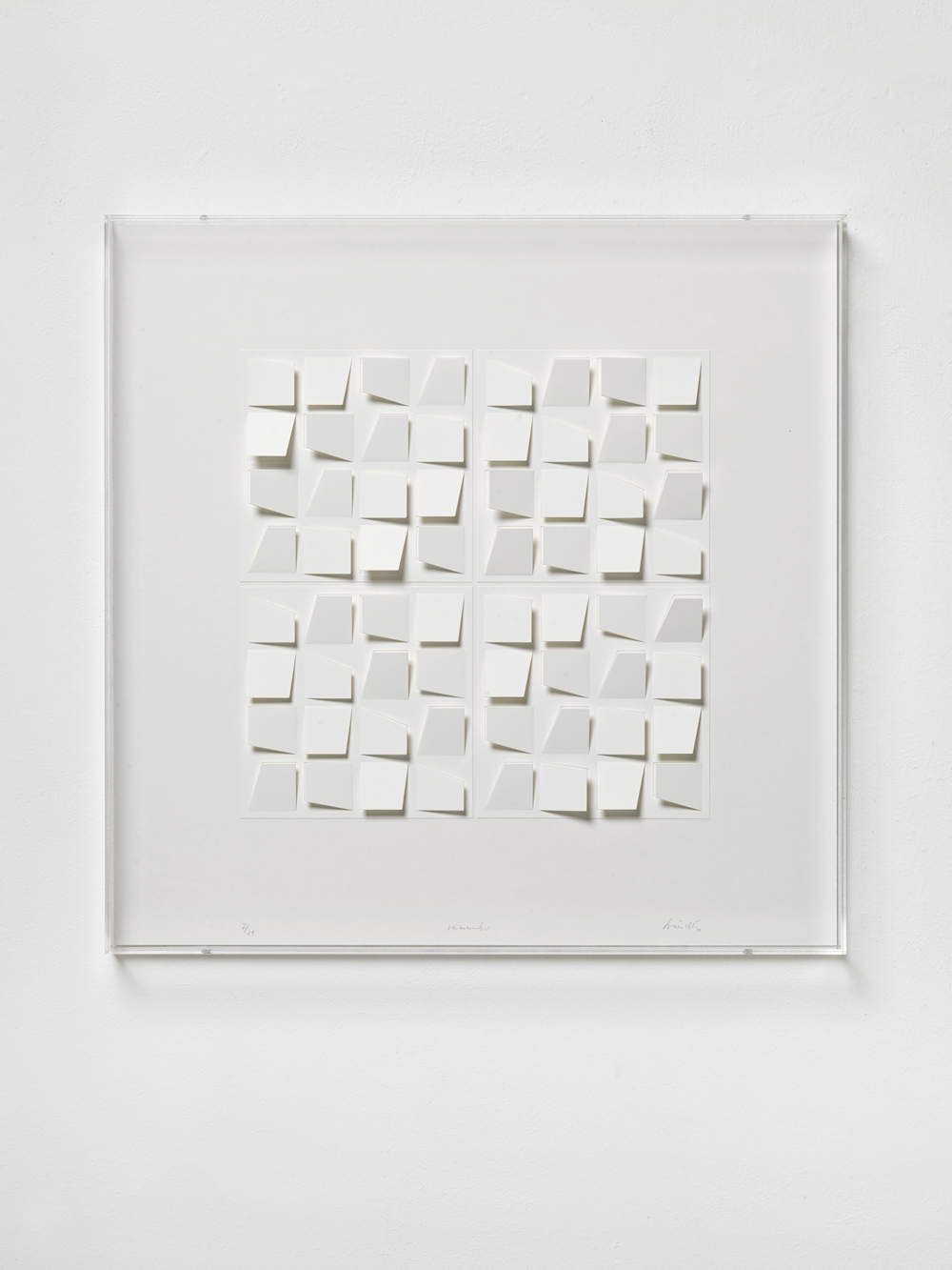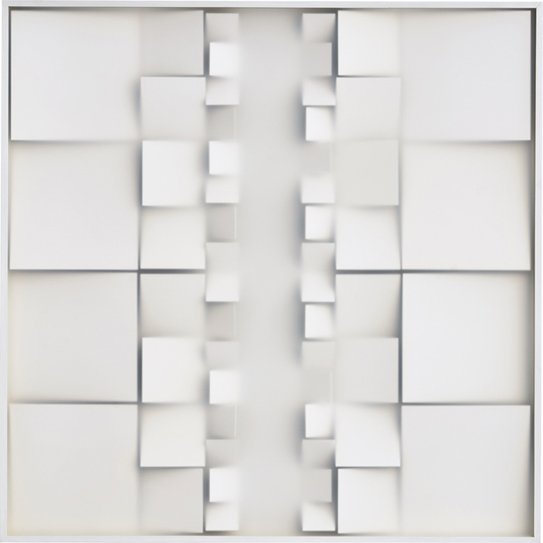 Die seit 1960 entwickelten seriellen Reliefs und seit 1967 bis heute entstandenen seriellen Objekte beziehen sich hauptsächlich auf die Farbe Weiß, auf die Transparenz, das Licht und den Raum und schließen die Interaktion des Betrachters ein.
