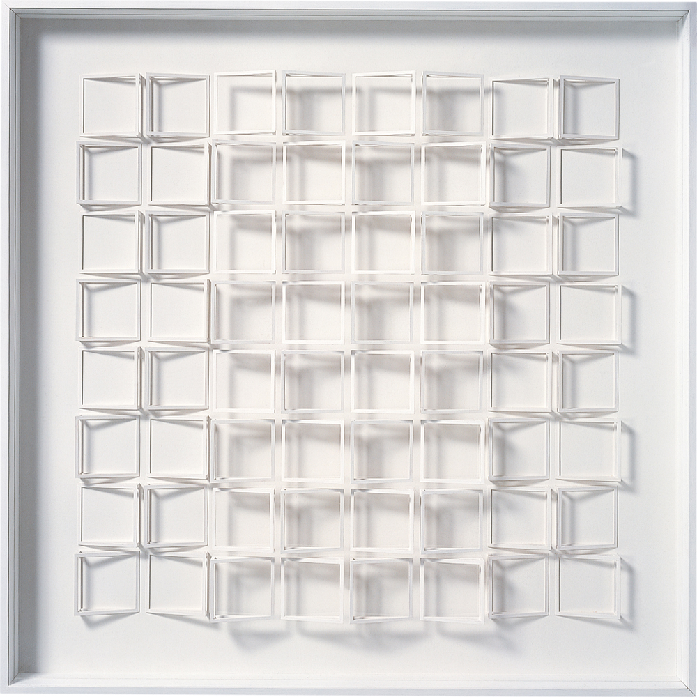 Der Münchner Kunststudent Klaus Staudt hatte 1960 mehrere Initialbegegnungen. Er gründete mit Gerhard von Graevenitz und Jürgen Morschell in München die »galerie nota«. Als ersten Künstler stellten die Freunde den brasilianischen konkreten Künstler Almir Mavignier aus, über den sie in Kontakt zur Ulmer Hochschule für Gestaltung kamen, an der der Südamerikaner bei Max Bill und Josef Albers studiert hatte. In diesem Kontext lernten sie auch Kurt Fried kennen, der in Ulm das legendäre »studio f« – ein Treffpunkt für konkret-konstruktive Künstler – betrieb. Dadurch knüpften sie schnell weitere Kontakte, und so stellte Staudt bereits 1963 in der Ausstellung »Nove Tendencije« in Zagreb aus, eine Ausstellungsreihe, die von 1961 bis 1973 an verschiedenen europäischen Orten stattfand und sich als Sammelbecken einer jungen, europäischen Avantgarde etablierte. Das Raster, die Farbe Weiß und die Einbeziehung von Licht und Schatten fand sich bei den meisten der teilnehmenden Künstler, von denen viele avantgardistischen Bewegungen wie ZERO, GRAV, Gruppo N, Gruppo T und Nul angehörten. Doch warum war das Raster in dieser Szene ein derart zentrales Thema?