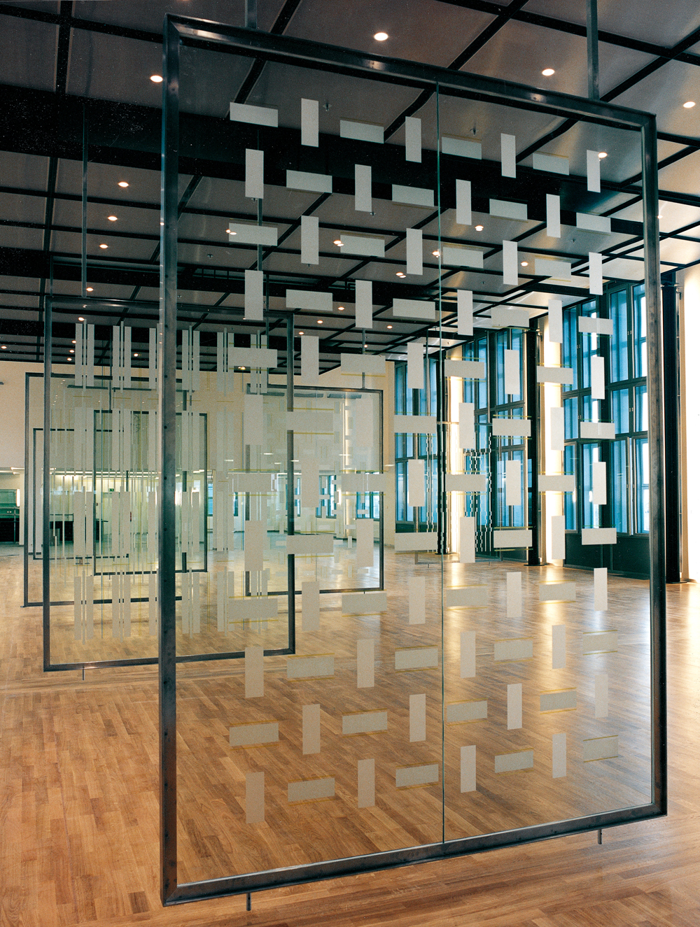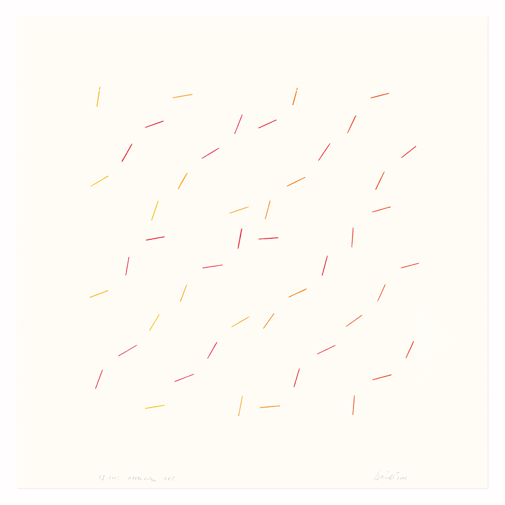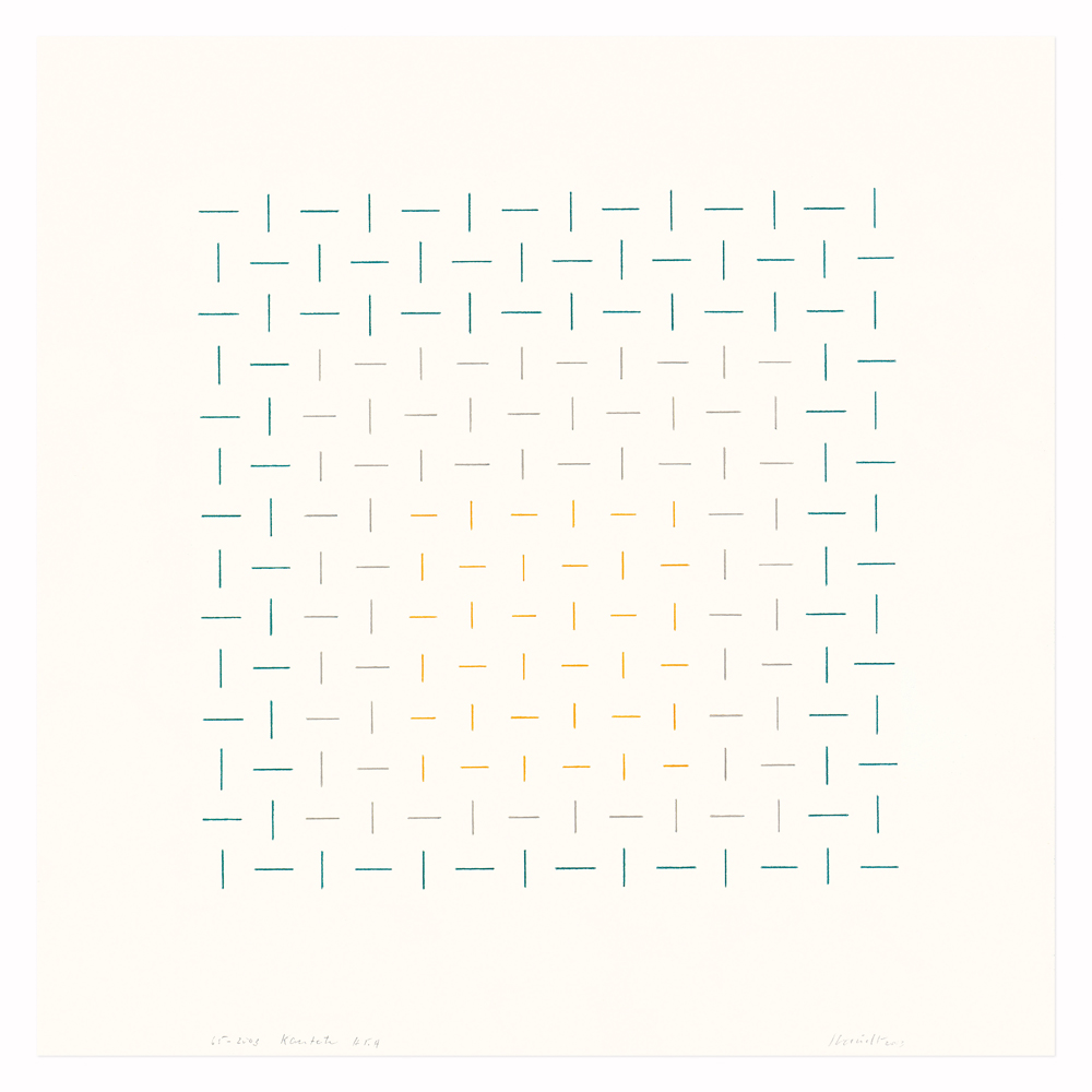 Es ist eine Qualität von Klaus Staudt, dass er das Raster nie ins Irrationale oder ins Hierarchische abgleiten lässt. Denn das Raster kann auch unregelmäßig ausgebildet sein und dann ganz andere optische Effekte hervorbringen.7 Staudt war jedoch schon früh von der Informationsästhetik eines Max Bense geprägt und begriff seine Elemente im Sinne eines Zeichens. In diesem Kontext ist das Regelwerk, das sich der Künstler mit jedem Schaffensprozess neu auferlegt, wie eine Art Programmierung zu verstehen. Das Raster wird dabei zum unverzichtbaren Teil des Systems. In das Bild des Computers übersetzt, ist das Raster die Speicherplatte, die Hardware, und die diversen Elemente sind die Programmierung, die Software. Damit ist das Raster in der Kunst von Staudt unverzichtbar und elementar, aber zugleich auch so selbstverständlich, dass es leicht in seiner Bedeutung übersehen wird.