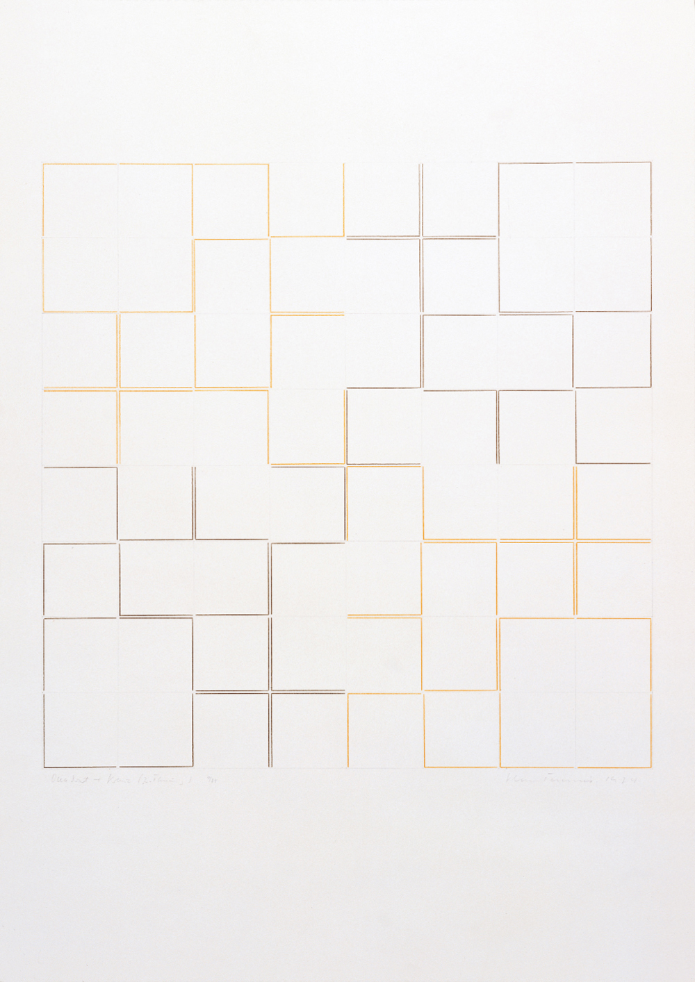 Das Raster ist wie kaum eine andere Struktur in sich paradox: demokratisch oder totalitär, zentrifugal oder zentripetal, materialistisch oder spirituell, rational oder irrational.4 Es bietet Künstlern eine Systematik, aus der sie im 20. Jahrhundert eine ungeahnte Vielfalt an strengen, spielerischen oder gebrochenen Werken ableiteten.5 Klaus Staudt begriff das Raster immer als ein rationales Instrument, um eine gleichberechtigte – nicht gleichmacherische – Struktur sichtbar und transparent werden zu lassen.